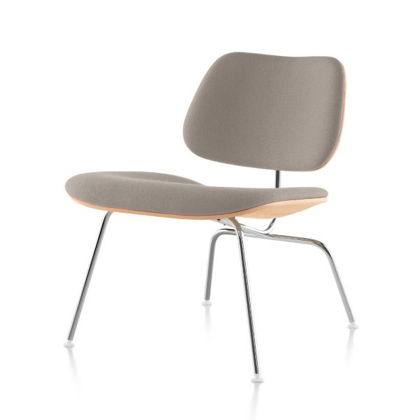 The eames molded plywood chair is available in multiple upholstered fabric.